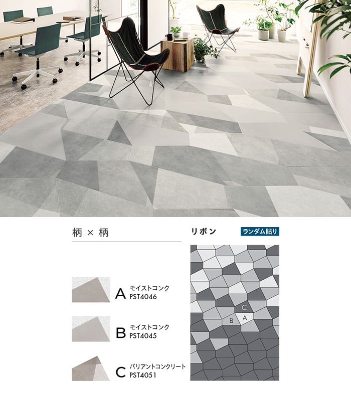 フロアタイル 東リ ロイヤルストーン・テトラ PST4051 不等辺四角形 3mm 16枚入
