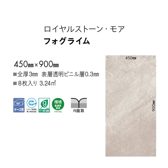 フロアタイル 東リ ロイヤルストーン・モア フォグライム 450×900×3mm 8枚入
