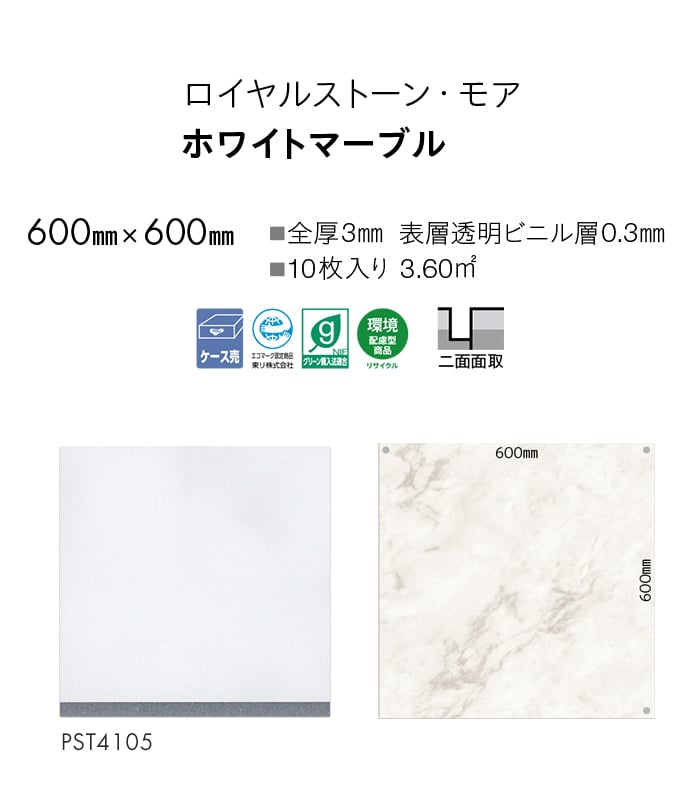 フロアタイル 東リ ロイヤルストーン・モア ホワイトマーブル 600×600×3mm 10枚入