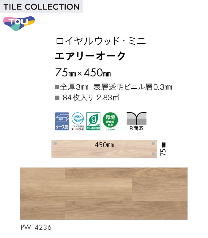 フロアタイル 東リ ロイヤルウッド・ミニ エアリーオーク 75×450×3mm 84枚入