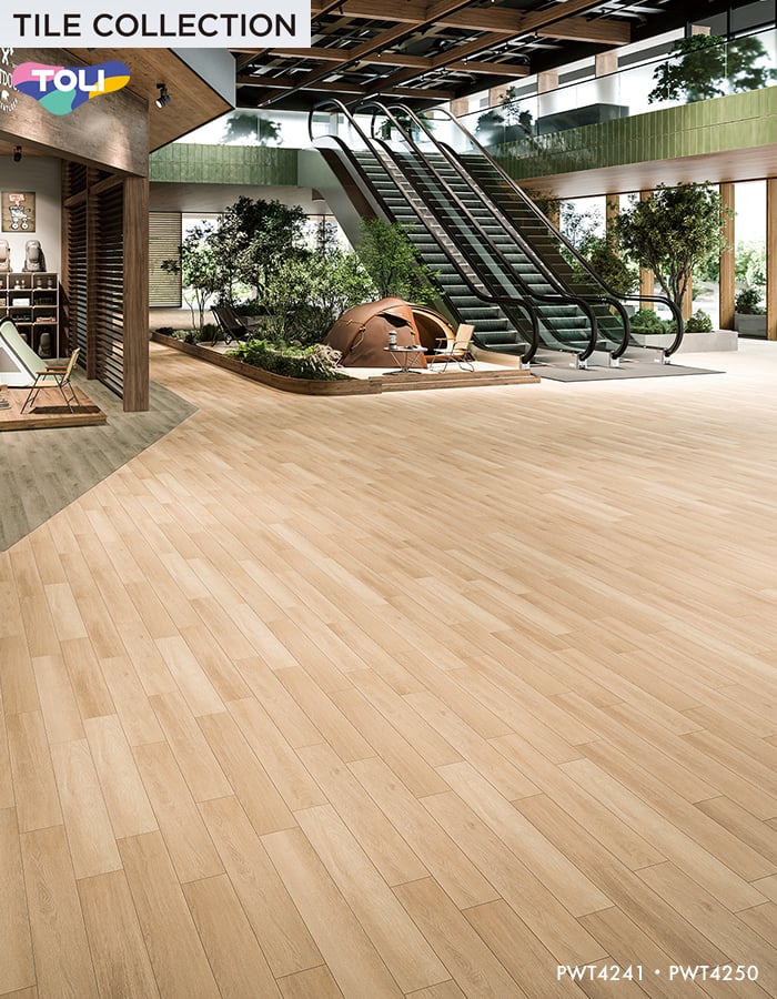 豊富な色柄と多様なサイズ。リアルな木目柄プリントタイル。エコマーク認定商品。