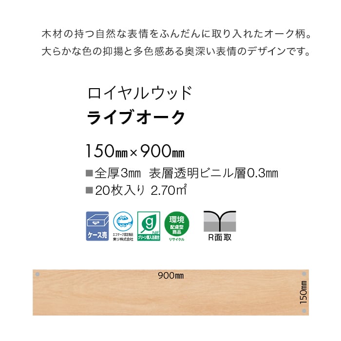 フロアタイル 東リ ロイヤルウッド ライブオーク 150×900×3mm 20枚入