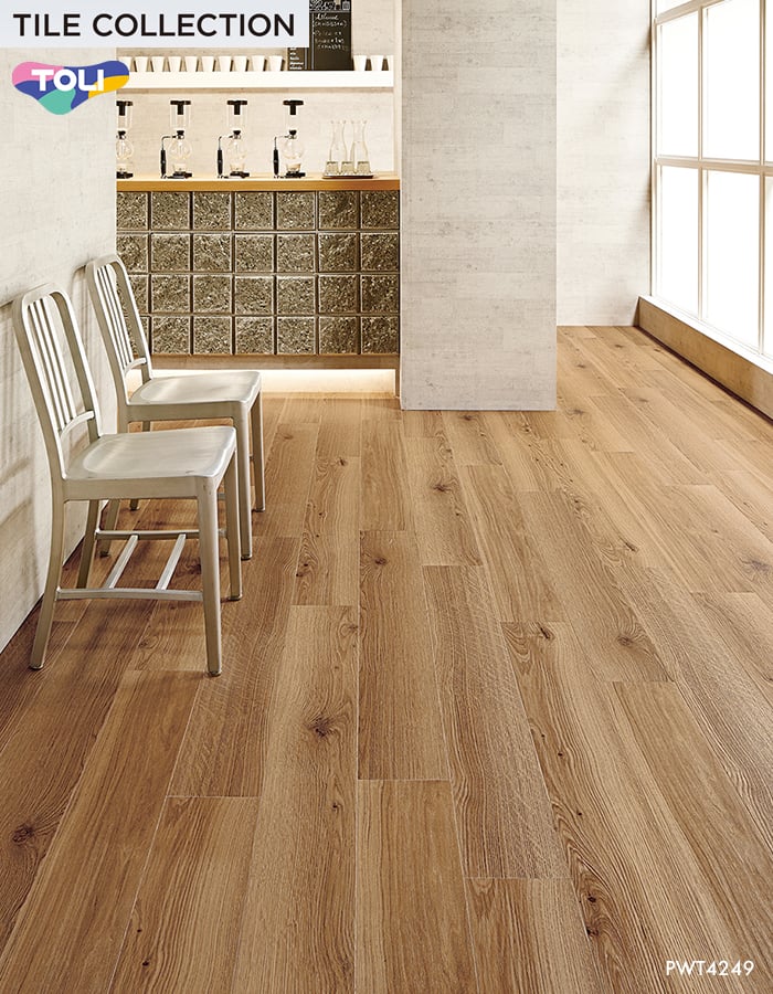 豊富な色柄と多様なサイズ。リアルな木目柄プリントタイル。エコマーク認定商品。