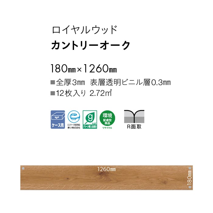 フロアタイル 東リ ロイヤルウッド カントリーオーク 180×1260×3mm 12枚入