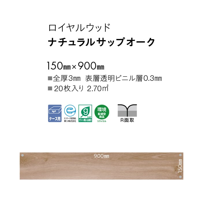 フロアタイル 東リ ロイヤルウッド ナチュラルサップオーク 150×900×3mm 20枚入