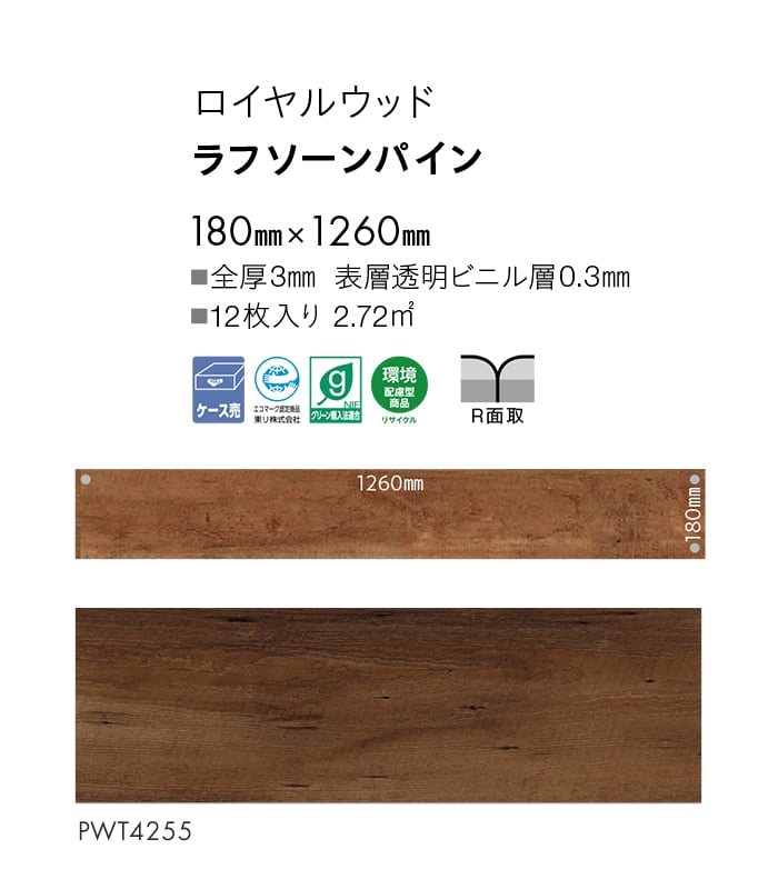フロアタイル 東リ ロイヤルウッド ラフソーンパイン 180×1260×3mm 12枚入