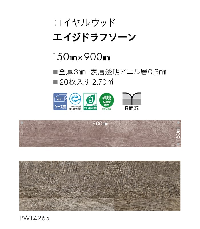 フロアタイル 東リ ロイヤルウッド エイジドラフソーン 150×900×3mm 20枚入