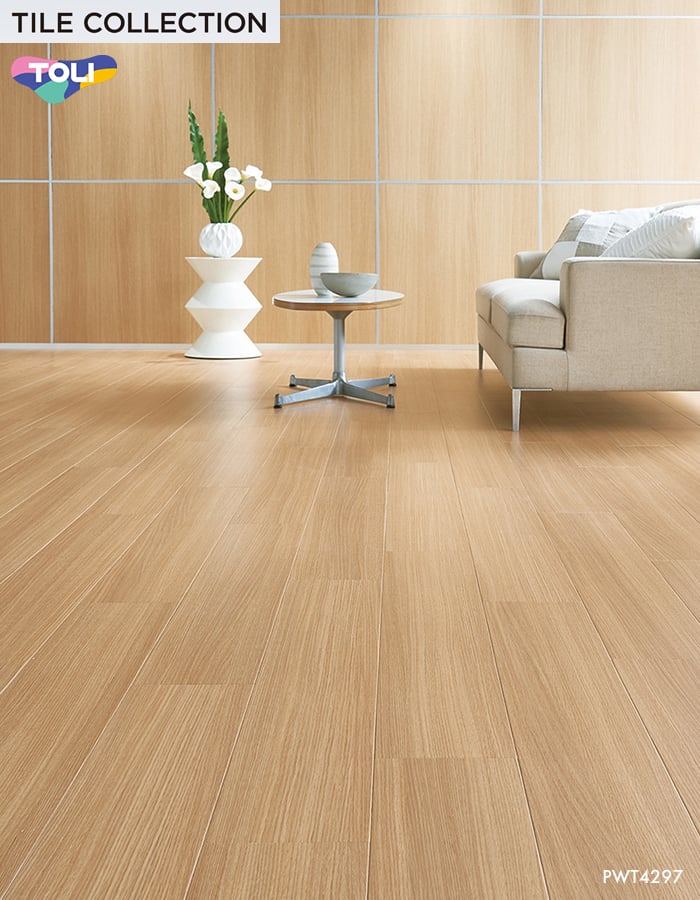 豊富な色柄と多様なサイズ。リアルな木目柄プリントタイル。エコマーク認定商品。