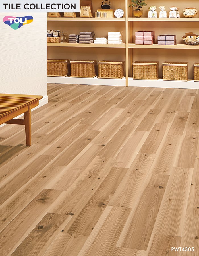 豊富な色柄と多様なサイズ。リアルな木目柄プリントタイル。エコマーク認定商品。