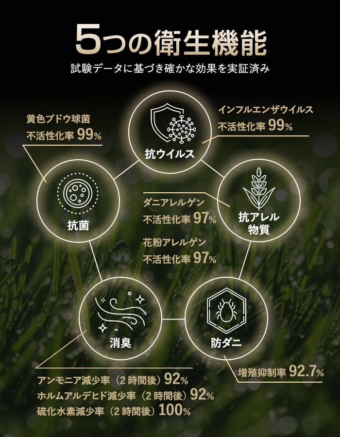 抗菌・抗ウイルス・抗アレル物質・防カビ性能を備えた日本製人工芝。