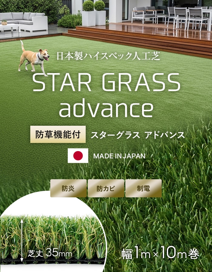 人工芝 ロール 防草機能付き 1m×10m巻 芝丈35mm スターグラスアドバンス