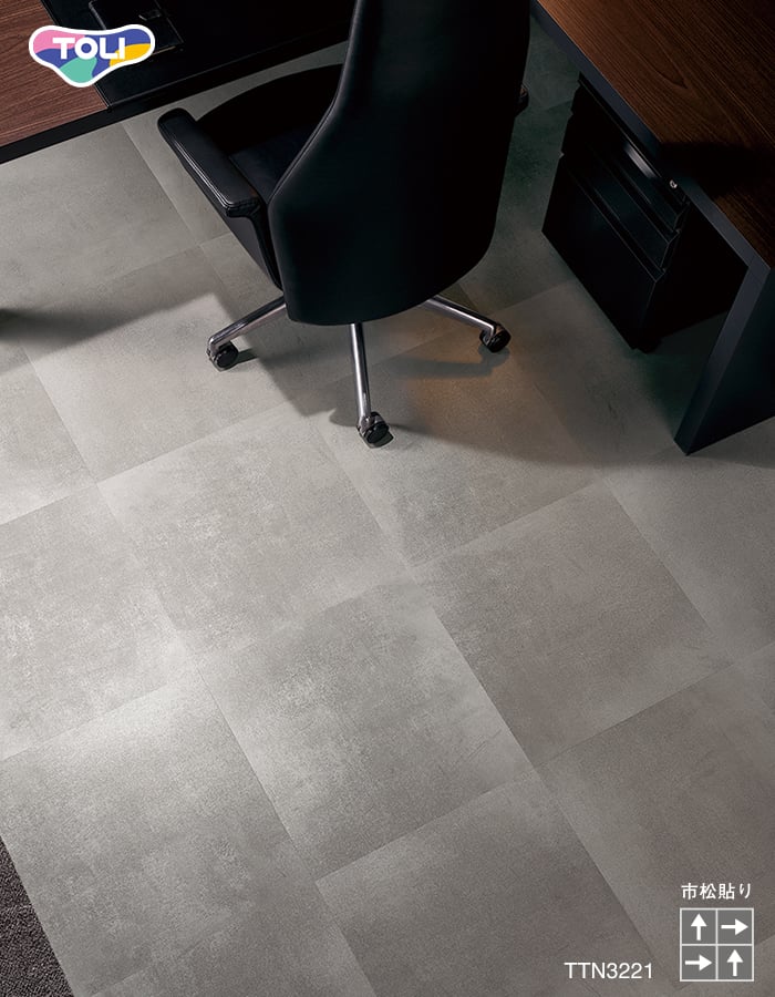 オフィスや店舗、各種施設で幅広く利用できる、ワックスメンテナンス不要の高意匠置敷きビニル床タイル。