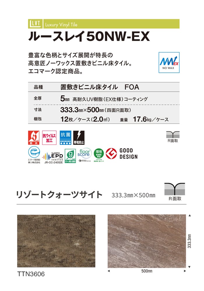 東リ フロアタイル ルースレイタイル50NW-EX リゾートクォーツサイト 全厚5mm 12枚入