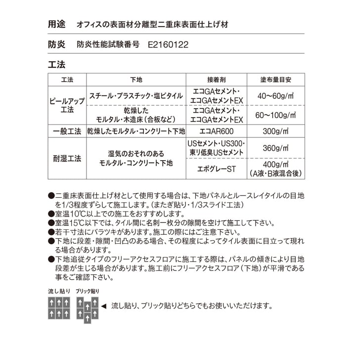 ○帯電防止:静電気を拡散させ、発生を緩和する帯電防止グレード。静電気の発生による障害を防止したい場所への施工におすすめ
