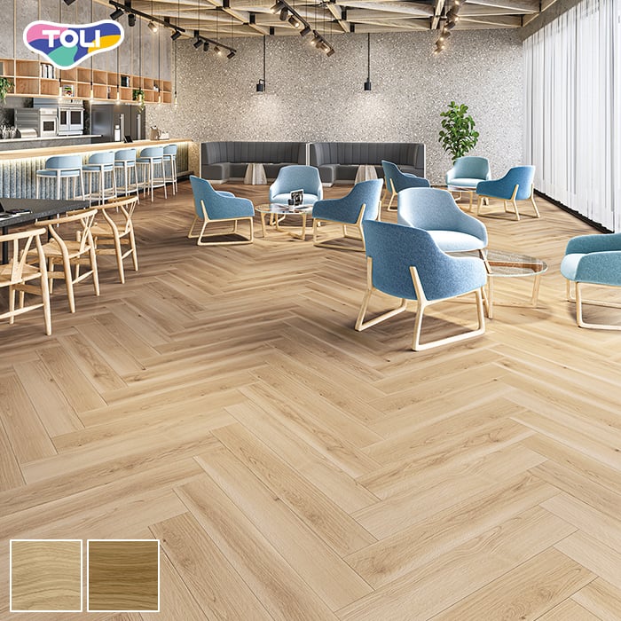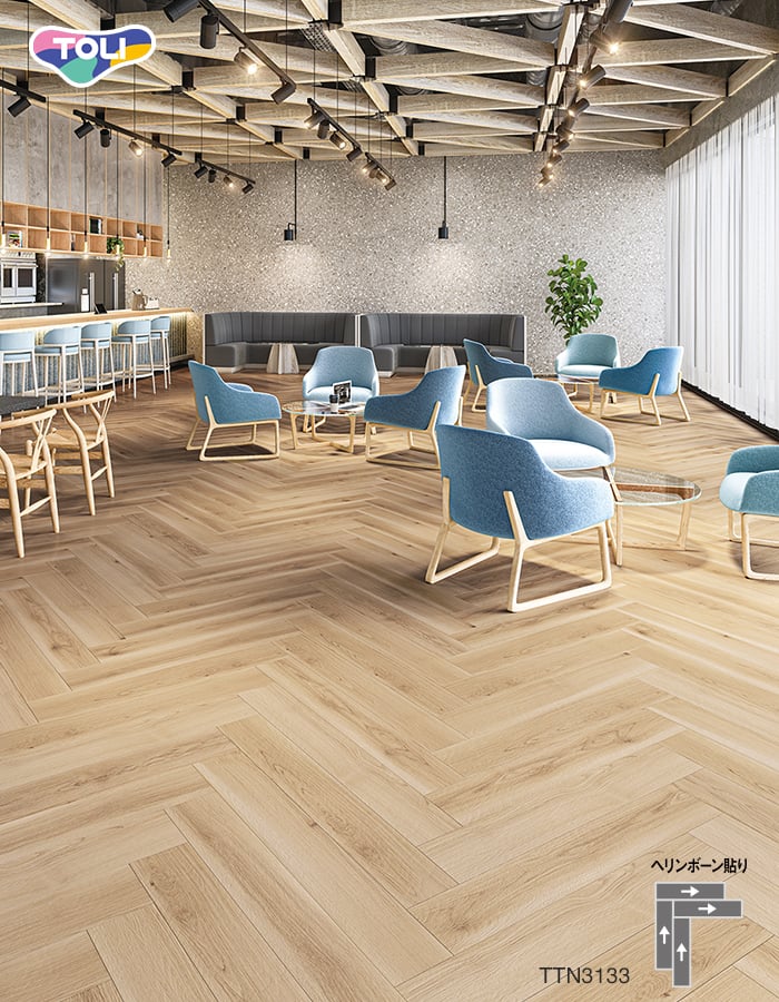 オフィスや店舗、各種施設で幅広く利用できる、ワックスメンテナンス不要の高意匠置敷きビニル床タイル。