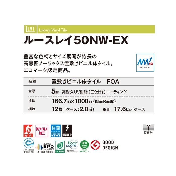 東リ フロアタイル ルースレイタイル50NW-EX エアリーオーク 全厚5mm 12枚入