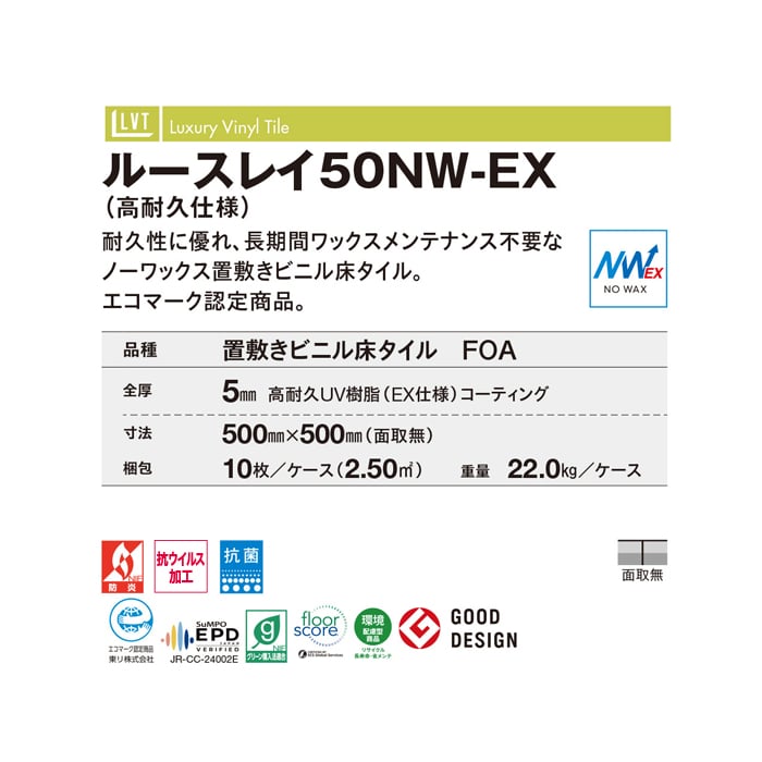 東リ フロアタイル ルースレイ 50NW-EX(高耐久仕様) TTN4212~ 全厚5mm 10枚入