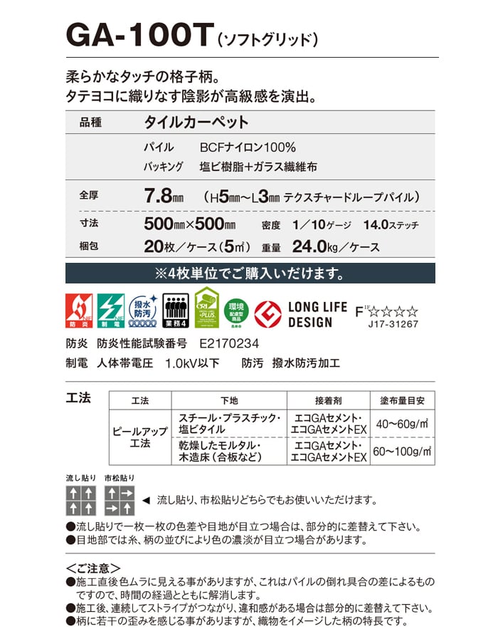タイルカーペット 50×50 東リ GA-100T ソフトグリッド 4枚単位