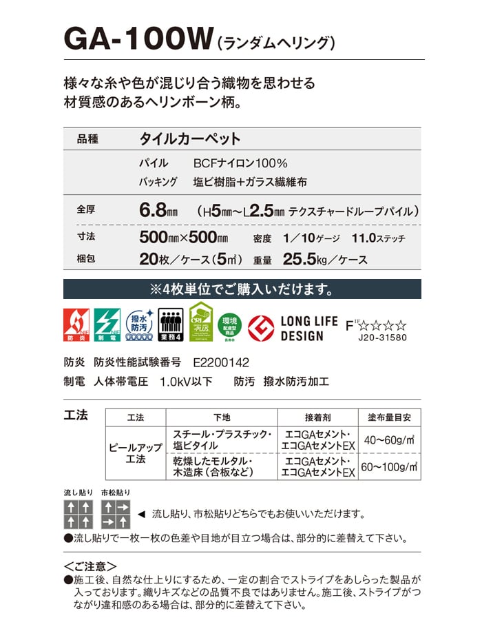 タイルカーペット 50×50 東リ GA-100W ランダムヘリング 4枚単位