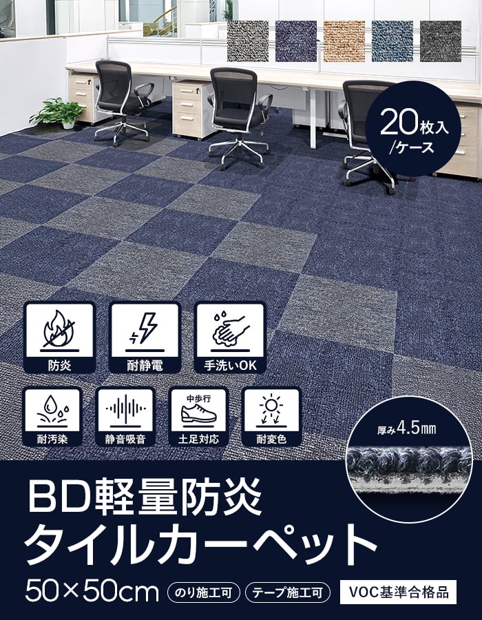 BD軽量防炎タイルカーペット 50cm×50cm 20枚入