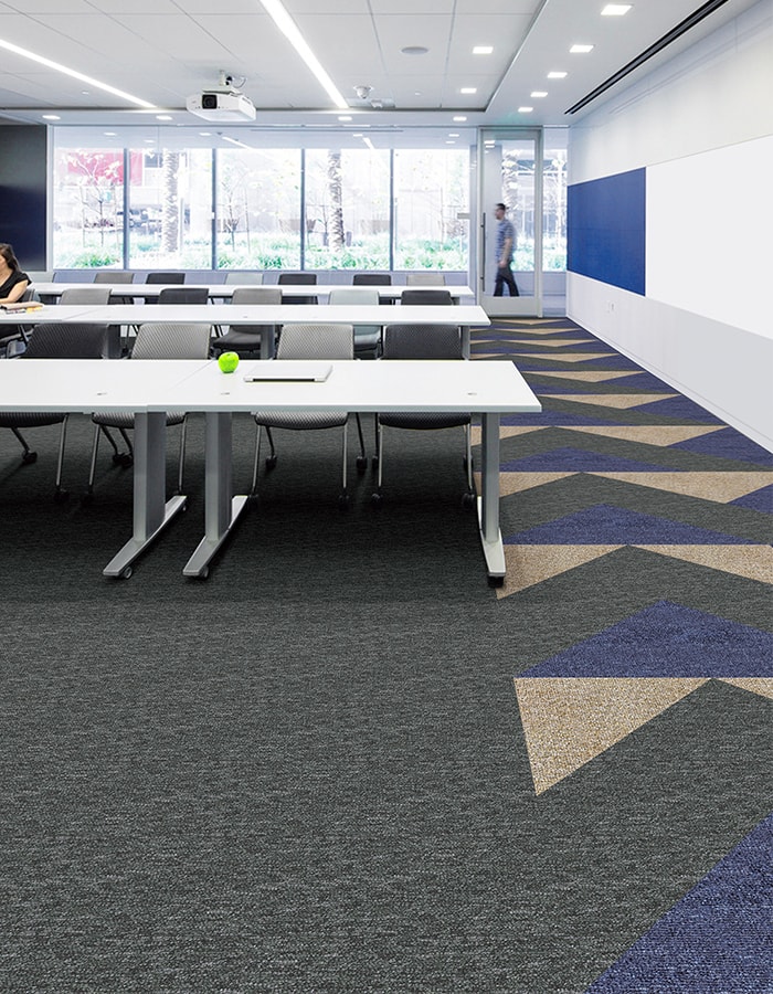 環境にやさしく、軽量で扱いやすい防炎タイルカーペット。