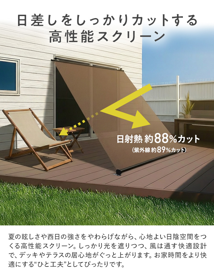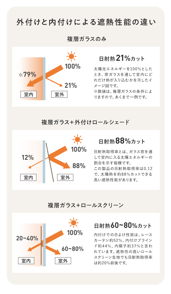 直射日光を外側でカットすることで、室内の温度上昇を抑え、エアコン効率の向上にも役立ちます。