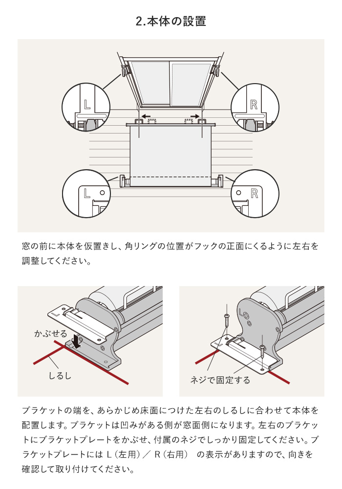 サッシの上端に専用フックを引っ掛け、スクリーンを引き出すだけの簡単操作。