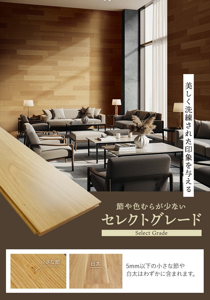 壁パネル 天然木 羽目板 12mm セレクトグレード UVマット塗装 15枚入
