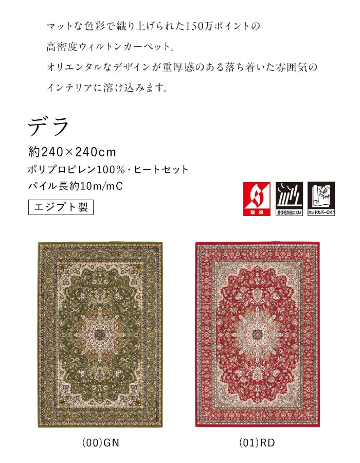 ○防炎:消防法施行令等で定められた防火性能基準に基づいて作られたカーペットです。