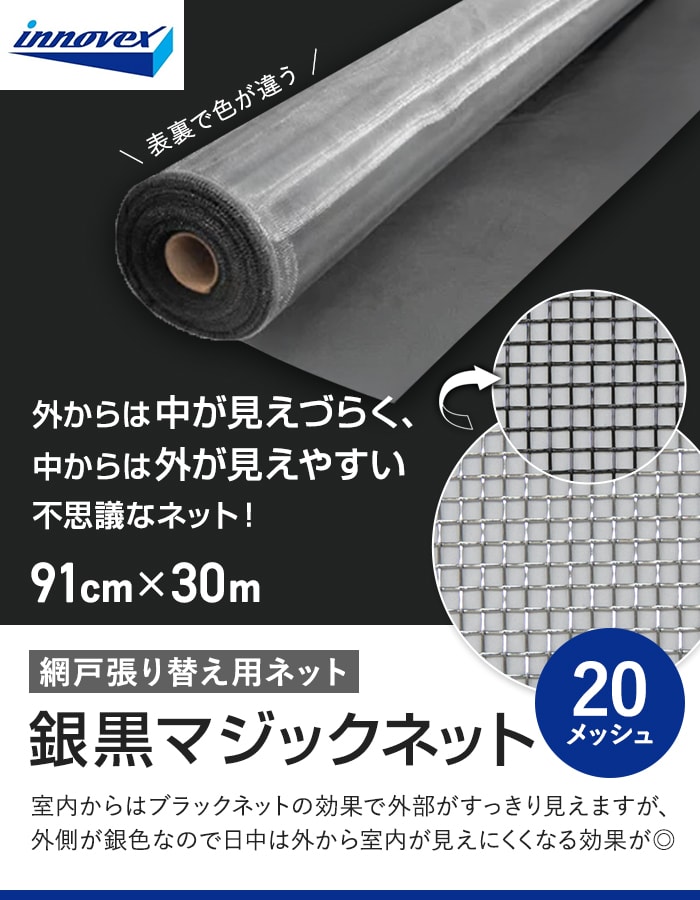 網戸 張り替え用網 銀黒マジックネット 20×20メッシュ 91cm×30m