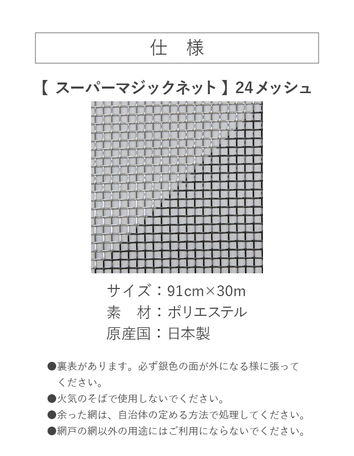網戸 張り替え用網 スーパーマジックネット 24×24メッシュ 91cm×30m