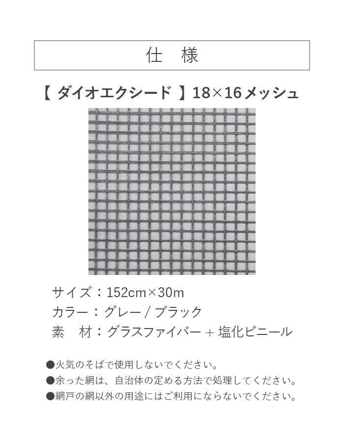 網戸 張り替え用網 ダイオエクシード 18×16メッシュ 152cm×30m 2本入