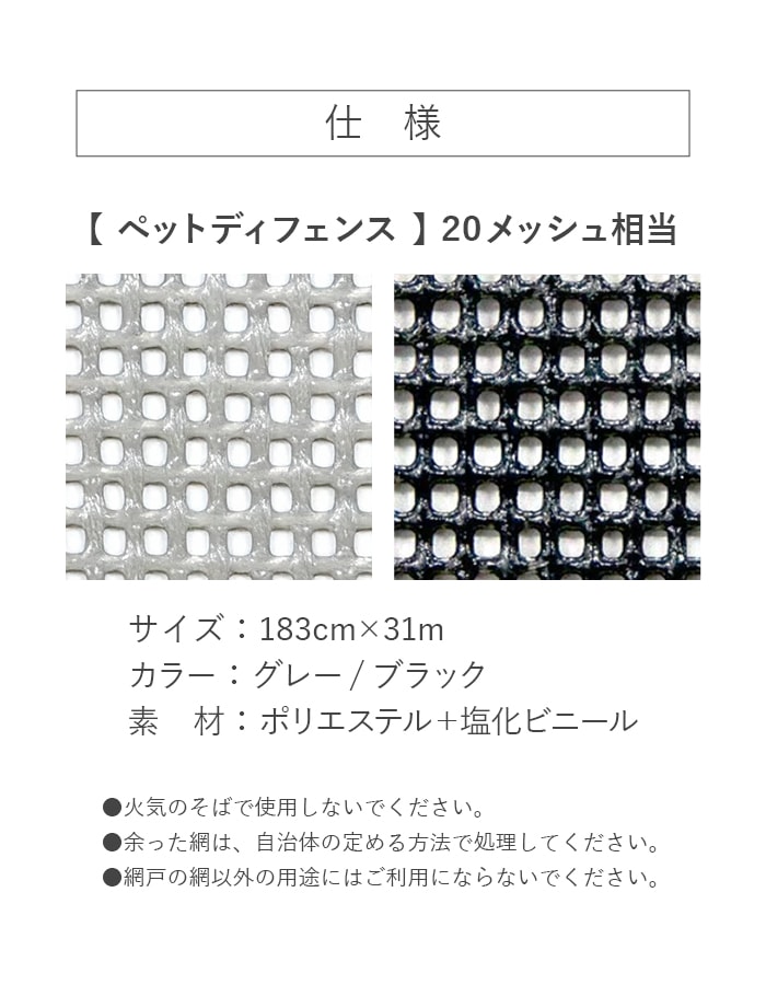 網戸 張り替え用網 ペットディフェンス 20メッシュ相当 183cm×31m