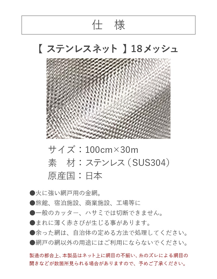 網戸 張り替え用網 ステンレスネット SUS304 18×18メッシュ 100cm×30m