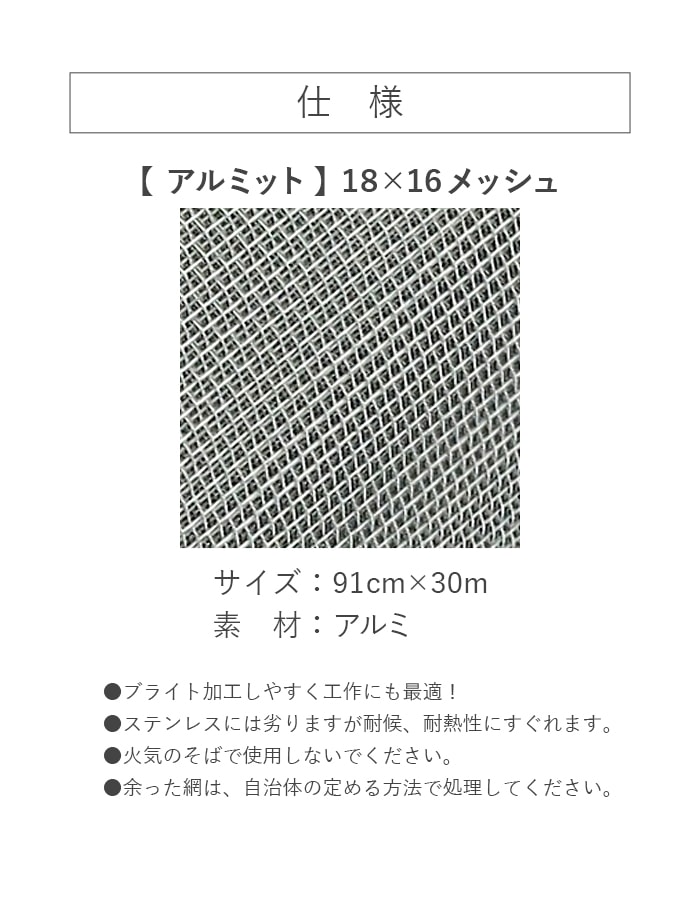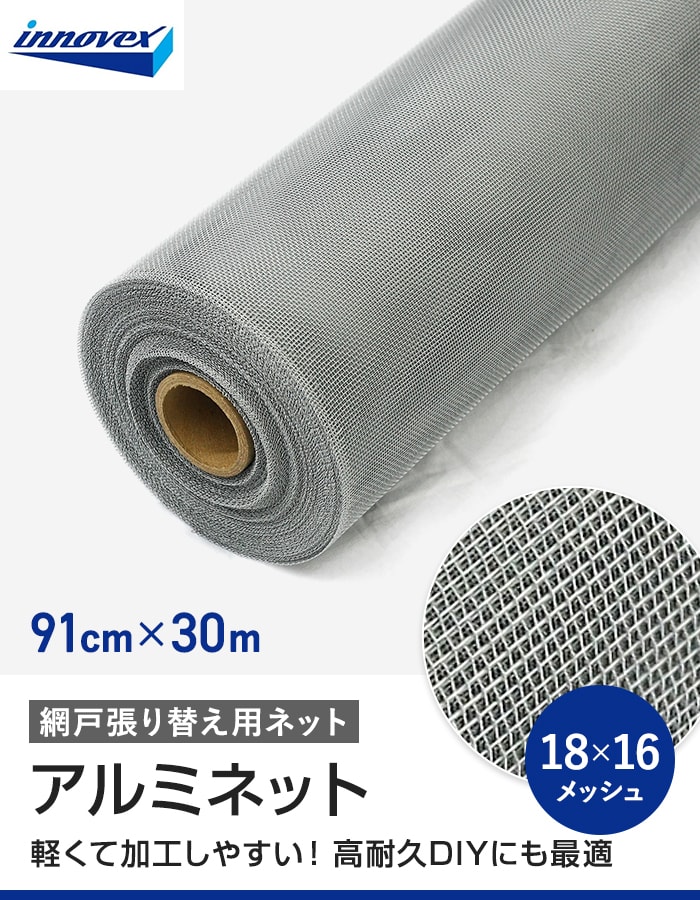 網戸 張り替え用網 アルミネット 18×16メッシュ 91cm×30m