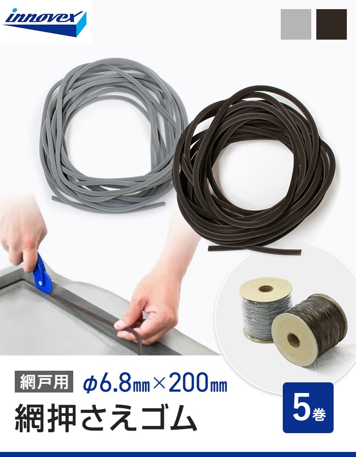 網戸 張り替え用 網押えゴム 6.8mm×200m 5巻入
