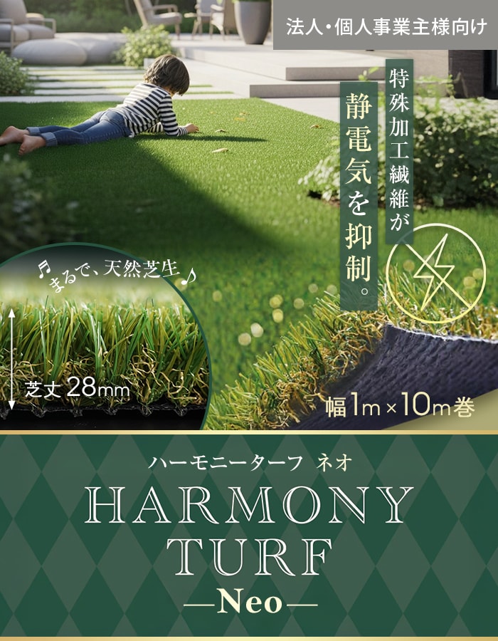 【法人配送】 人工芝 ロール ハーモニーターフ ネオ 1m×10m 芝丈28mm 高密度