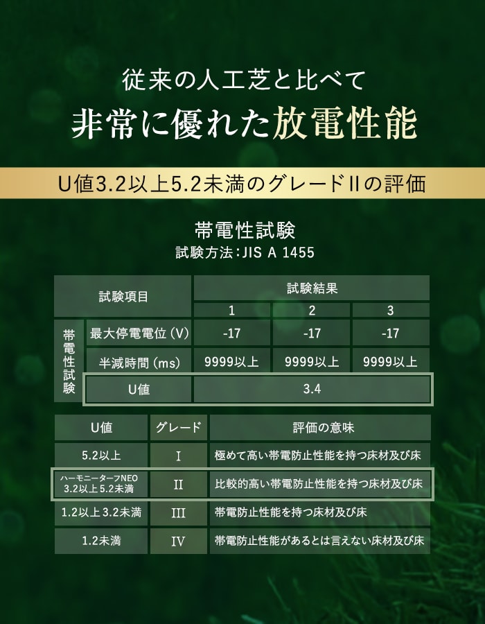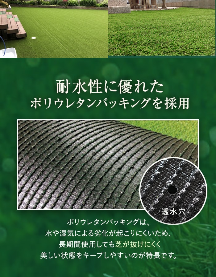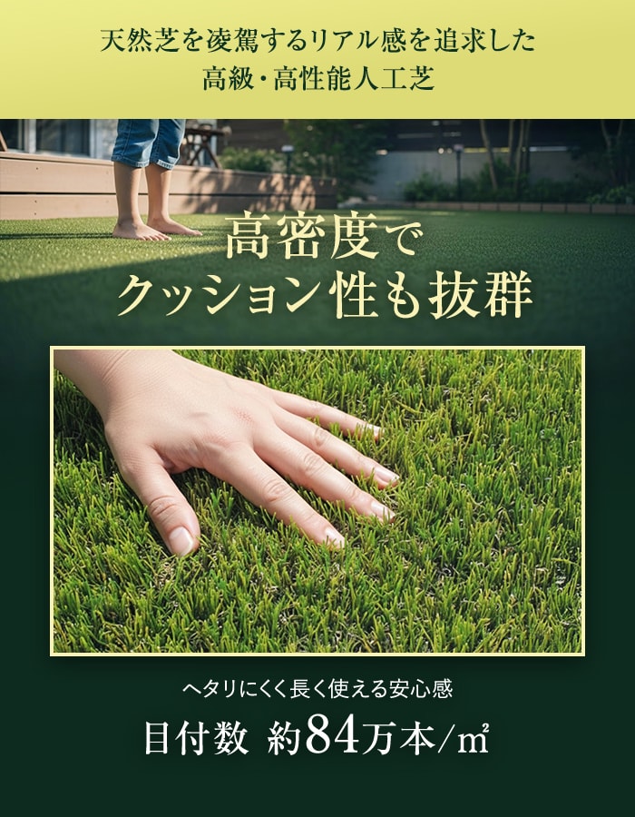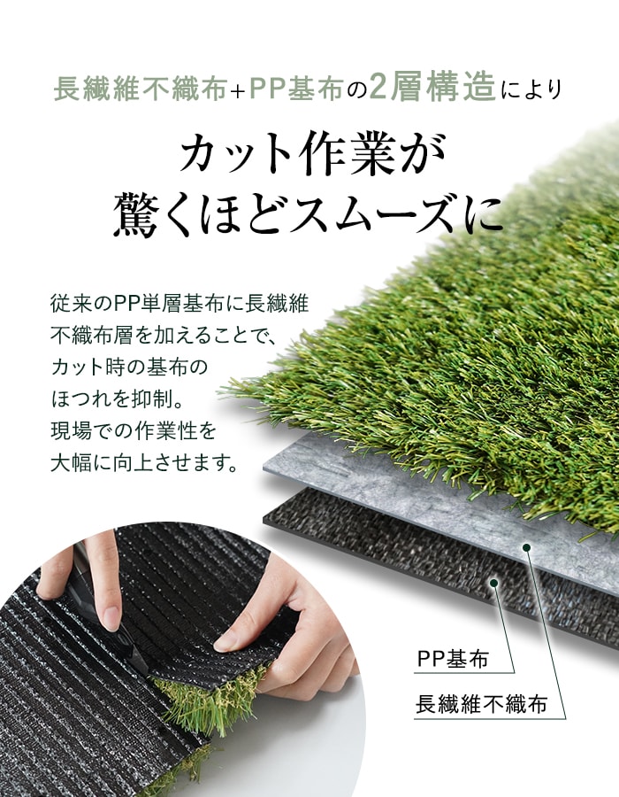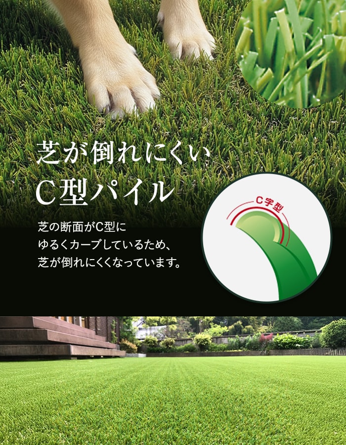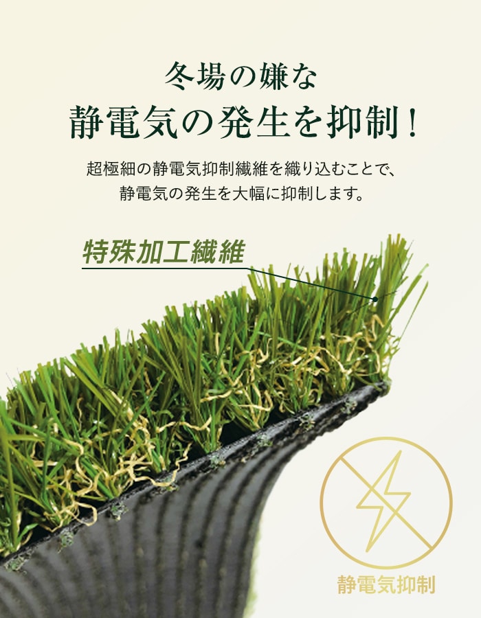 制電機能付きで冬場の嫌な静電気を抑制。一年中快適に使える人工芝です。