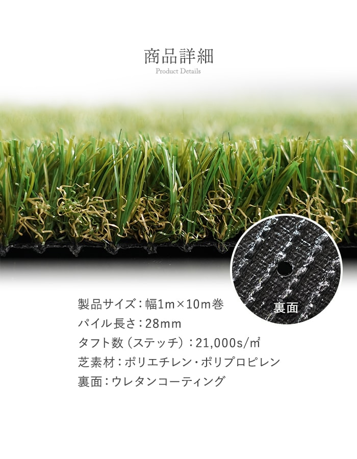 人工芝 ロール ハーモニーターフ ソフト 1m×10m 芝丈28mm 高密度