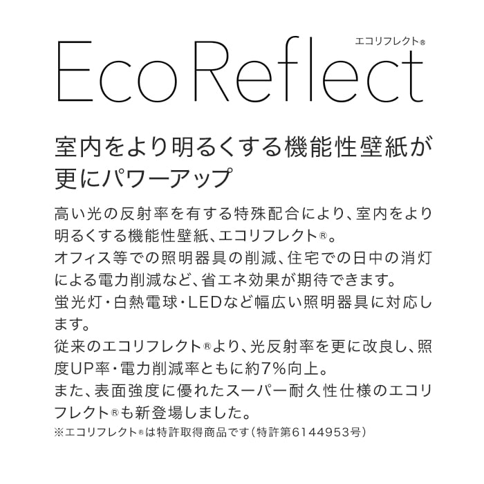 空間を明るくするエコリフレクト。使いやすいシャープな石目調です。