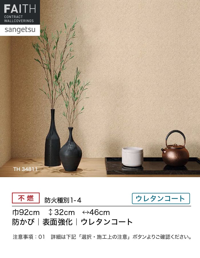 ホテルやオフィス、医療・福祉、商業施設など多様な空間を彩るサンゲツの不燃認定壁紙「FAITH」シリーズ。施工方法が自分で選べるのり付きタイプ。
