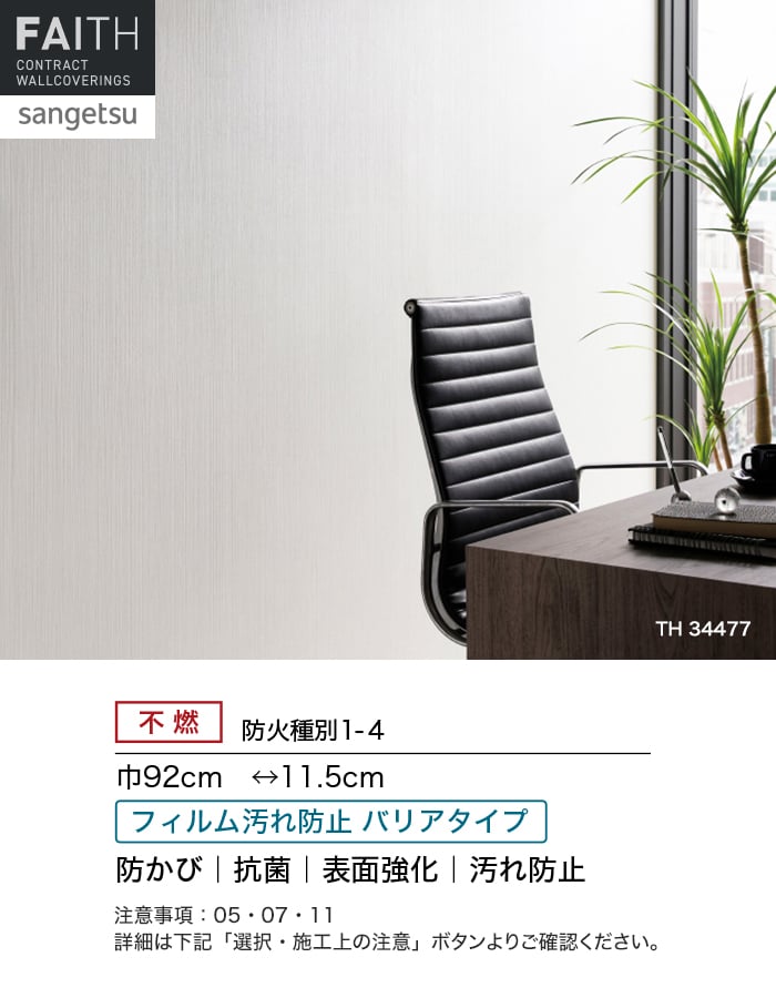 ホテルやオフィス、医療・福祉、商業施設など多様な空間を彩るサンゲツの不燃認定壁紙「FAITH」シリーズ。施工方法が自分で選べるのり無しタイプ。