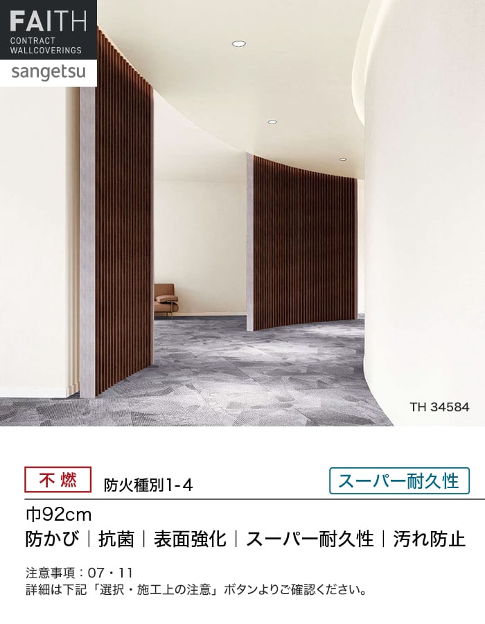 ホテルやオフィス、医療・福祉、商業施設など多様な空間を彩るサンゲツの不燃認定壁紙「FAITH」シリーズ。施工方法が自分で選べるのり無しタイプ。