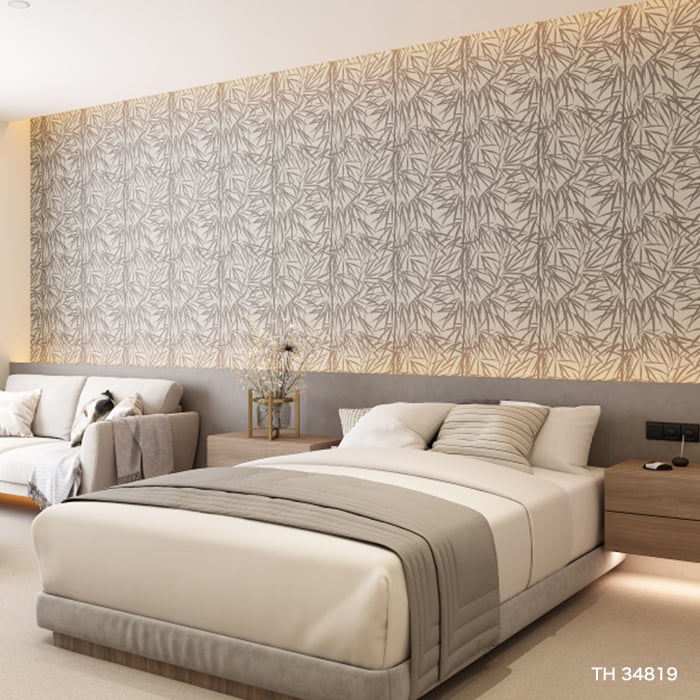 繊細な織物のテクスチャーとパールが高級感を演出する、モダンな竹柄です。