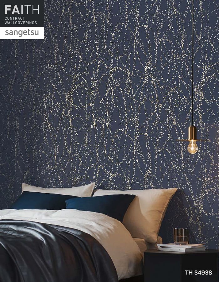 大胆に散らした金が目を引く、壁一面のアートとしてもお使いいただきたい壁紙です。
