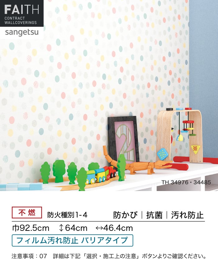 ○汚れ防止:付着した汚れが拭き取りやすいメンテナンス性に優れた壁紙です。(汚れ防止性能4級以上)