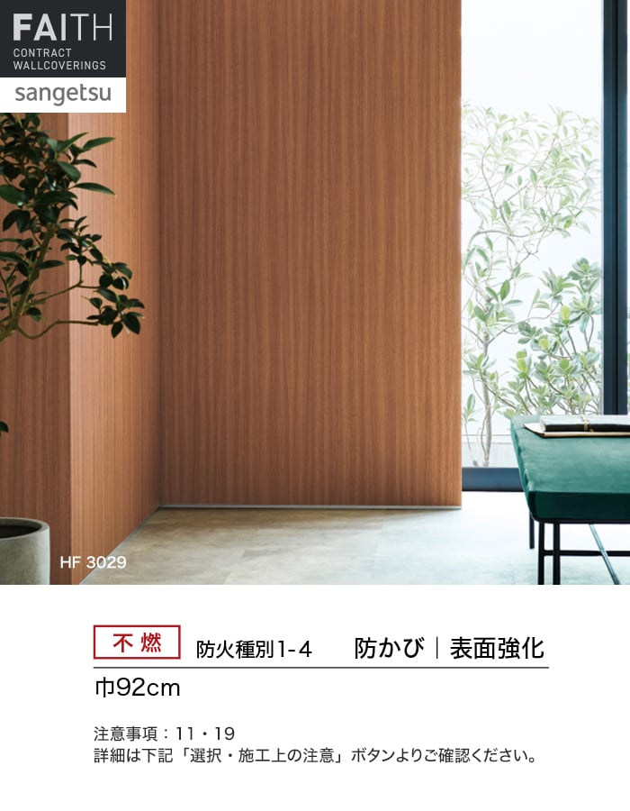 ホテルやオフィス、医療・福祉、商業施設など多様な空間を彩るサンゲツの不燃認定壁紙「FAITH」シリーズ。施工方法が自分で選べるのり無しタイプ。