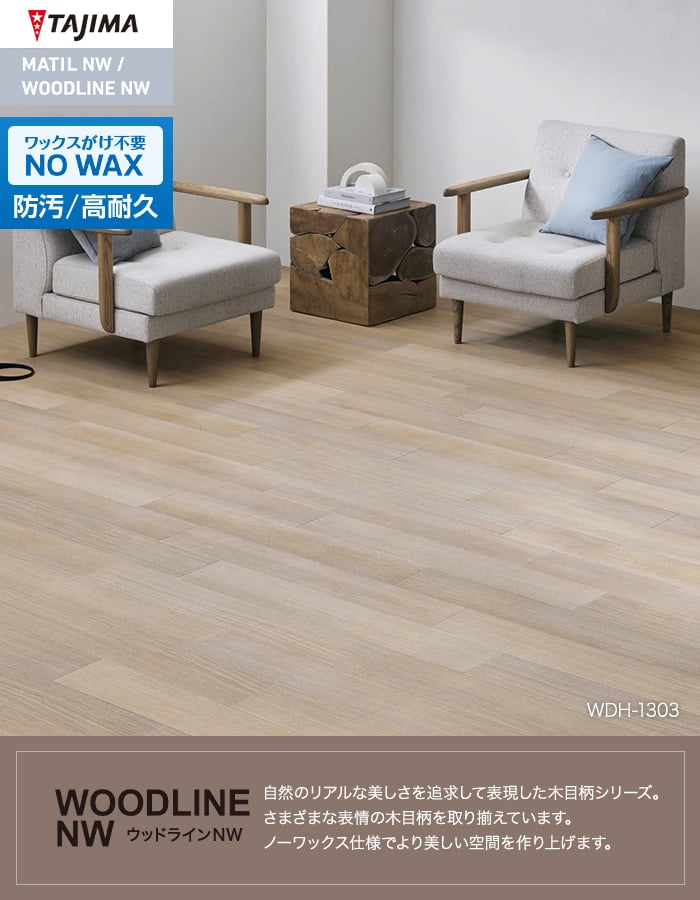 フロアタイル 木目 タジマ WOODLINE NW 150×914.4×3.0mm フィーカオーク 22枚入