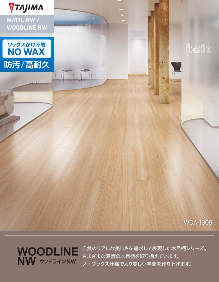 フロアタイル 木目 タジマ WOODLINE NW 100×914.4×3.0mm チーク 32枚入