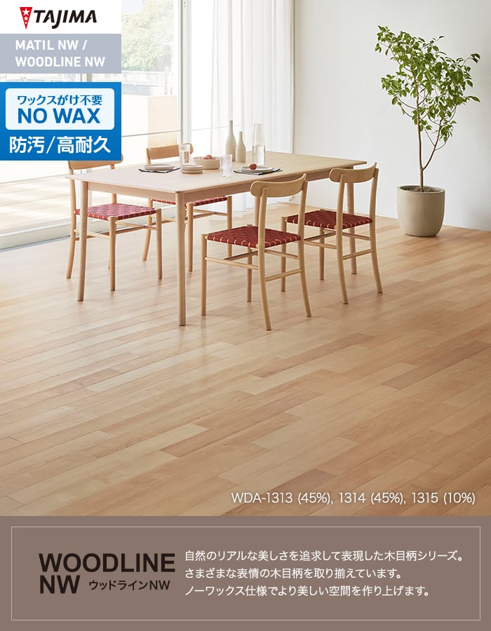 フロアタイル 木目 タジマ WOODLINE NW 100×914.4×3.0mm ノルムメープル 32枚入